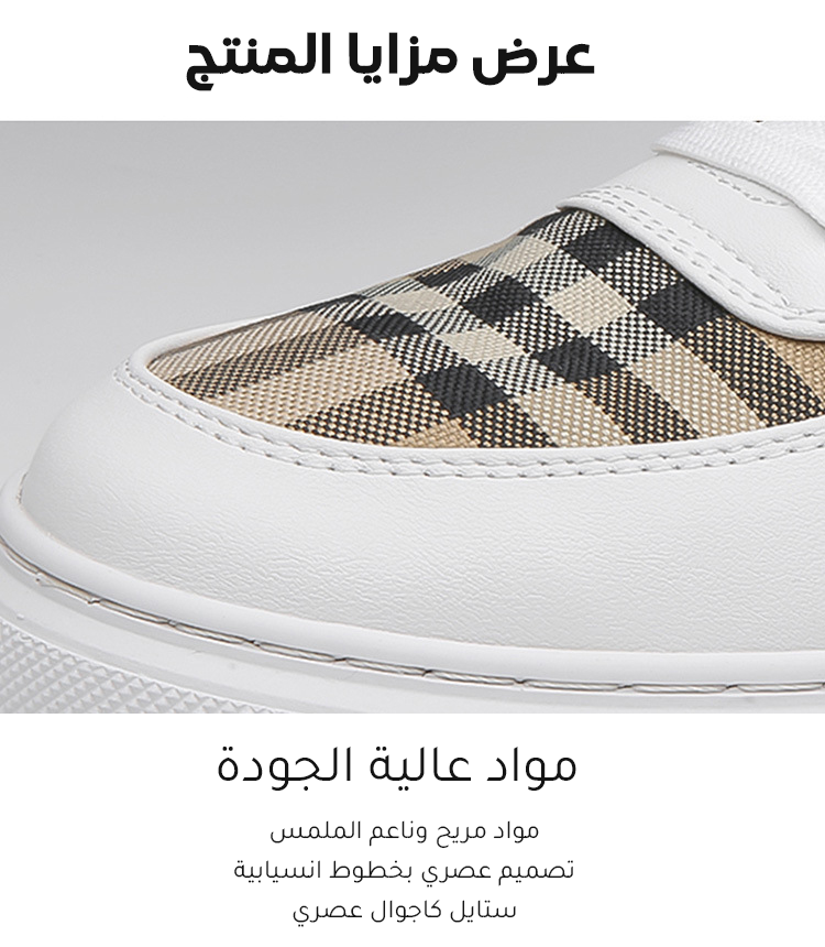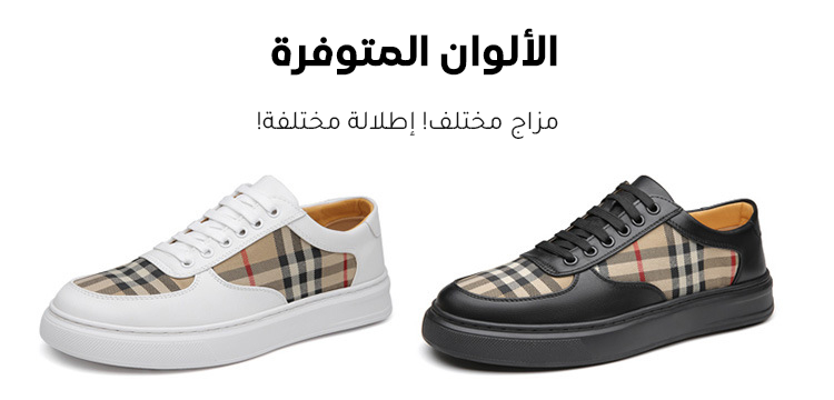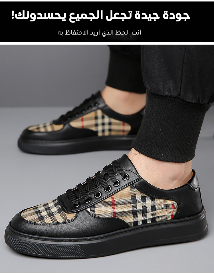 حذاء كاجوال راقي من جلد طبيعي وقماش مزين بنقوش مربعة كلاسيكية للرجال